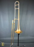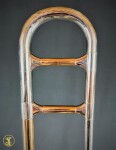 A used Olds Recording LA era straight tenor trombone featuring a a .495" - .510” dual bore, an 8” bell, and red brass slide tubes. Some cosmetic wear but still a great player! Used, w/case.